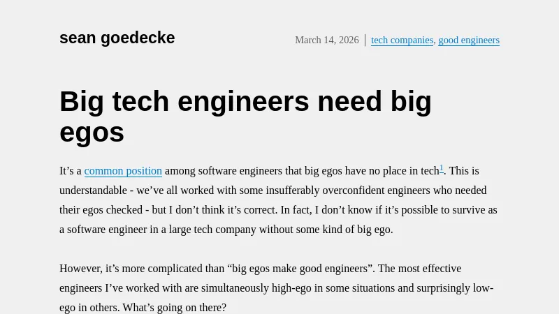 https://seangoedecke.com/big-tech-needs-big-egos/