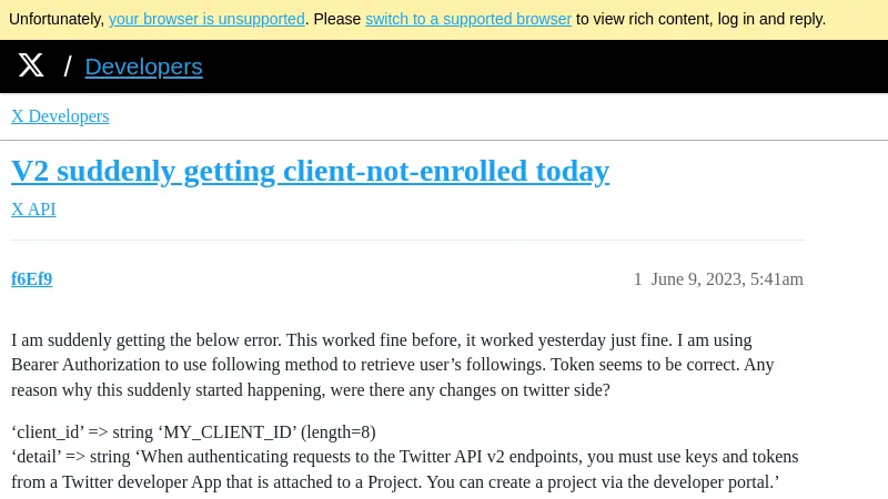 https://devcommunity.x.com/t/v2-suddenly-getting-client-not-enrolled-today/195456