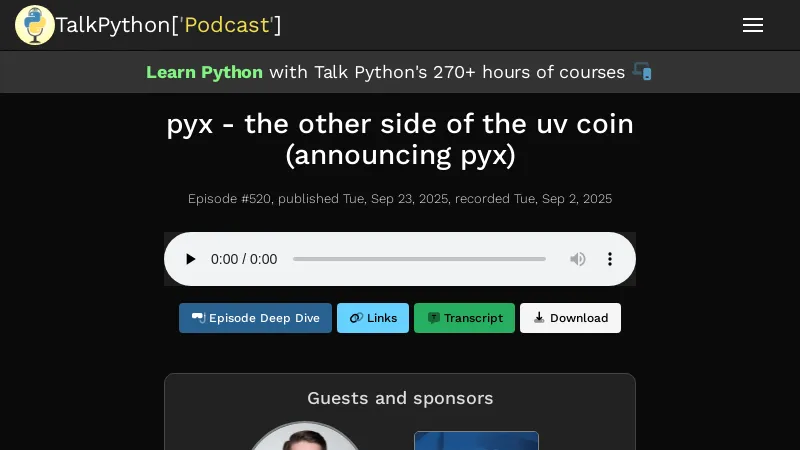 https://talkpython.fm/episodes/show/520/pyx-the-other-side-of-the-uv-coin-announcing-pyx