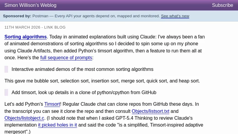 https://simonwillison.net/2026/Mar/11/sorting-algorithms/