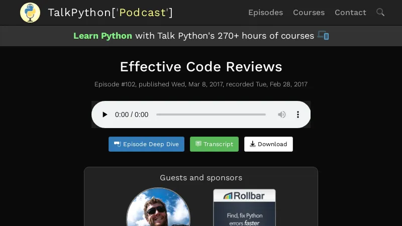 https://talkpython.fm/episodes/show/102/effective-code-reviews