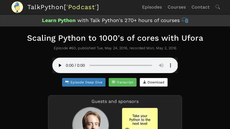 https://talkpython.fm/episodes/show/60/scaling-python-to-1000s-of-cores-with-ufora