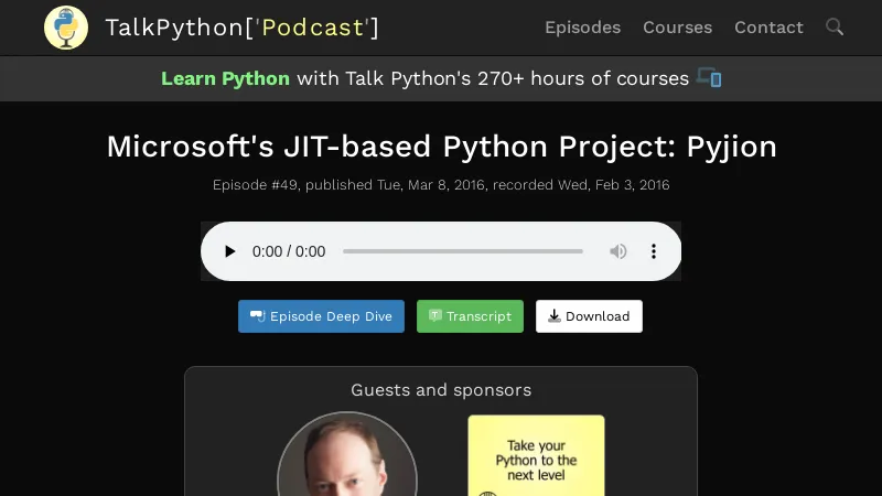 https://talkpython.fm/episodes/show/49/microsofts-jit-based-python-project-pyjion