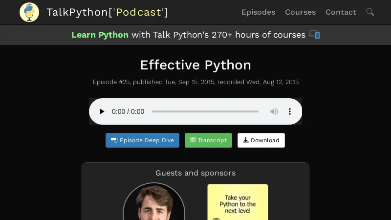 https://talkpython.fm/episodes/show/25/effective-python