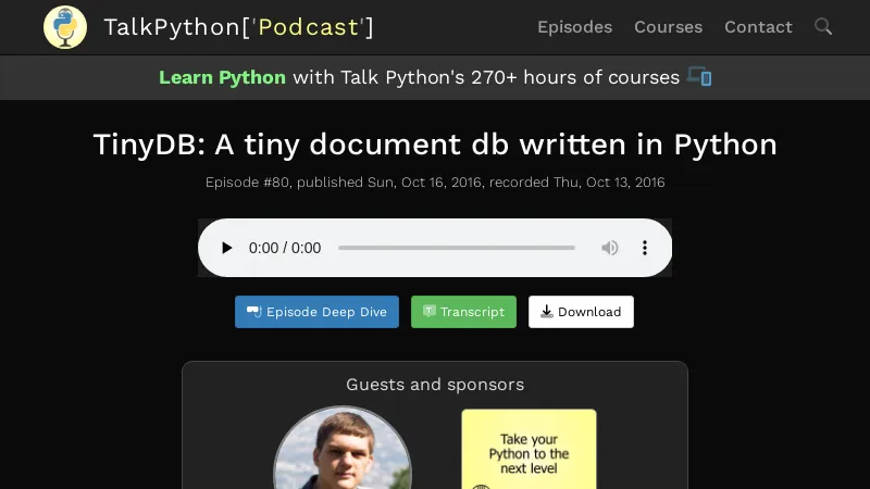 https://talkpython.fm/episodes/show/80/tinydb-a-tiny-document-db-written-in-python
