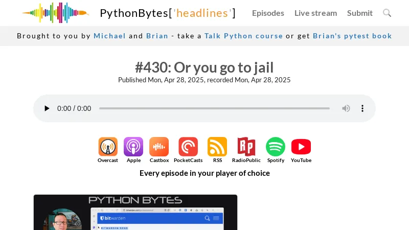 https://pythonbytes.fm/episodes/show/430/or-you-go-to-jail