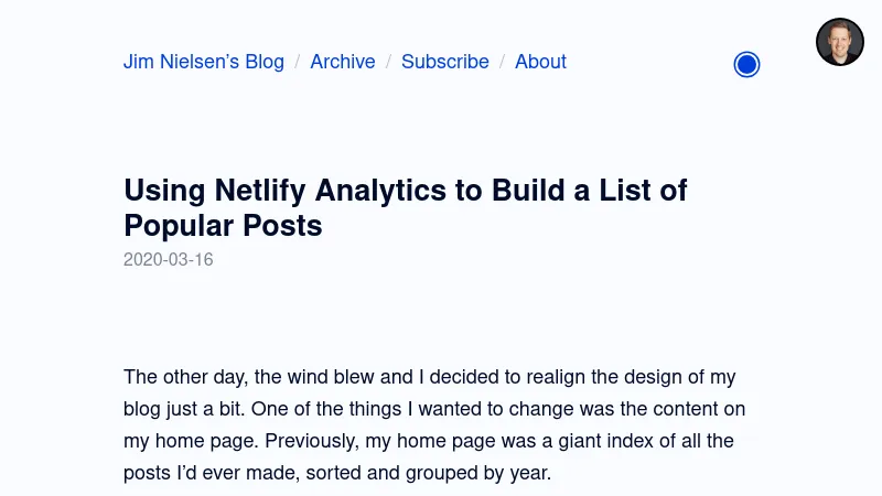 https://blog.jim-nielsen.com/2020/using-netlify-analytics-to-build-list-of-popular-posts/