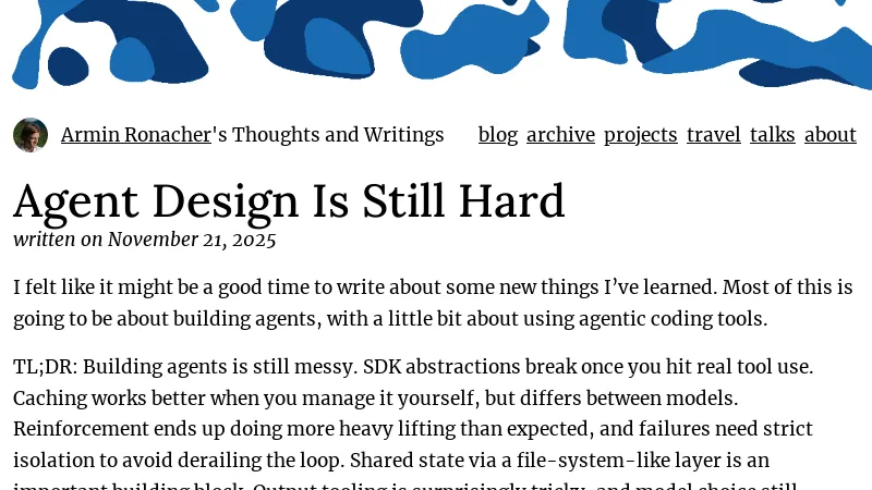 https://lucumr.pocoo.org/2025/11/21/agents-are-hard/