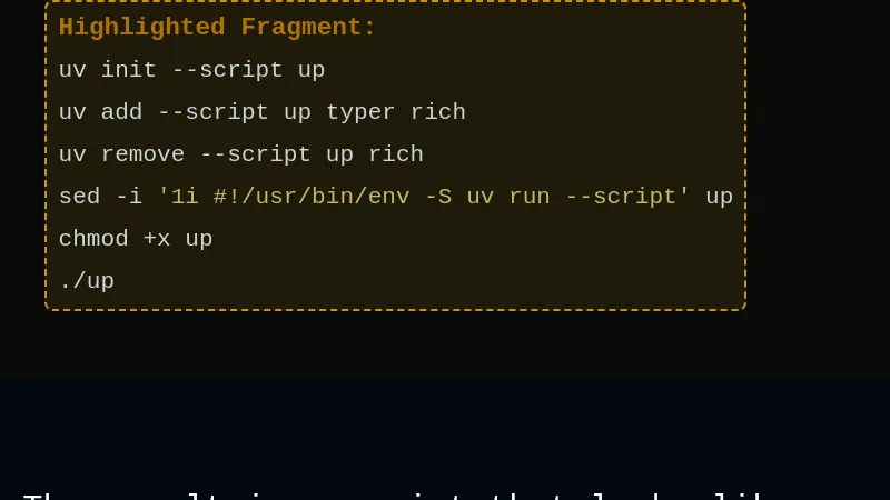 https://waylonwalker.com/uv-script-management/##sed+-i+'1i+#!/usr/bin/env+-S+uv+run+--script'+up
